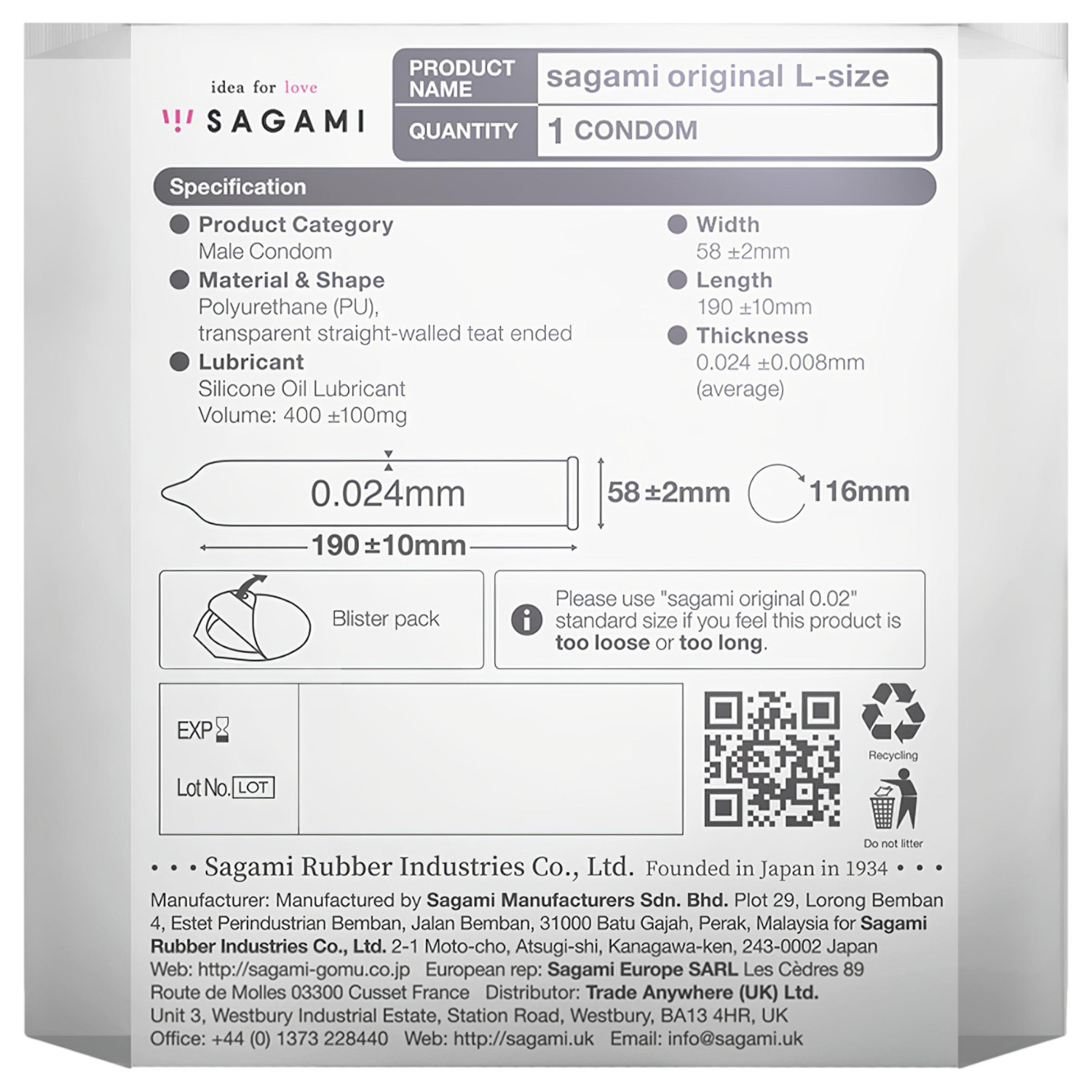 • 1 szt. Sagami Original 0.02 L-Size, prezerwatywa